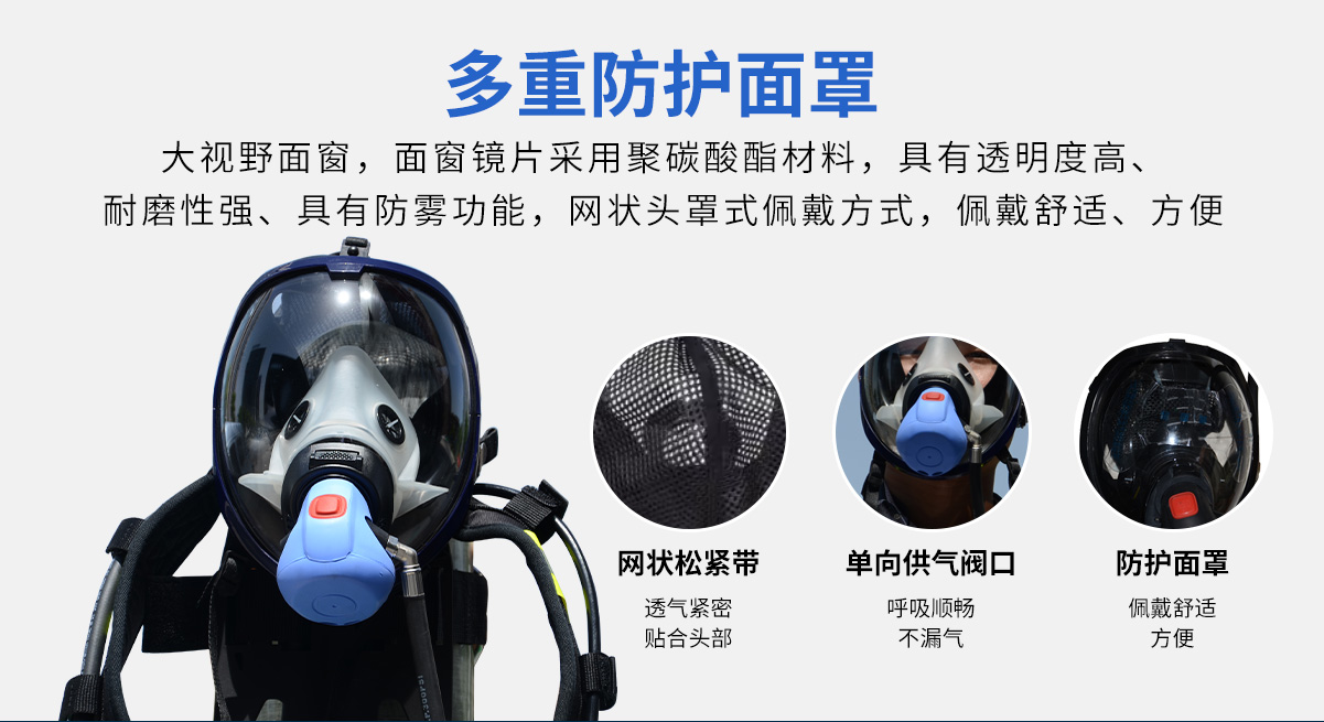 氣瓶容積 | 氣瓶工作壓力 | 最大供氣流量 | 呼吸阻力 | 報(bào)警壓力 | 整機(jī)重量 (最輕配置) | 參考使用時(shí)間 | ||